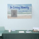 Memorial or Celebration of Life banner with an ocean and beach scene background for a funeral memorial event. All text editable: In Loving Memory, name, and dates. Change out the photo placeholder with a photo of the person being honored.