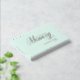 Customer specific, memorial, elegant, simpel "In Loving memory" rose-gold-foil handwriting font, mint funeral guest book. Availible in gold, copper and silver foil.