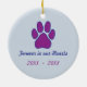 A beautiful memorial to hang on your Christmas tree or anywhere around your home. A rainbow, pet paw print and name on the front and a 'Forever in our Hearts' message and dates on the back, all text can be changed to suit you.