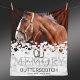 Elegant horse keepsake blanket featuring a modern marble heart patterned background, a treasured photo of your beloved horse, horseshoes, the saying "in loving memory", your pets name, and dates.
