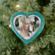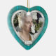 Memorial Photo Aqua Blue Silver Heart Christmas Ceramic Tree Decoration