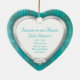 The text and photo on this memorial Christmas photo ornament (heart shape) are easy to customise. The non traditional aqua blue (teal, turquoise) pattern and silver heart frame makes this an elegant and unique "in memory of" Christmas ornament (in memoriam). On the back, you can customise it with the name of your loved one, as well as customise the memorial verses and years lived. To change the text and photo use the personalise options. For more extensive changes to the ornament, including changing the font, font size, font colour, text placement, picture size and/or picture placement, use the customise it option. The colours in the design are aqua blue and silver grey.