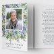 Introducing our exquisite 5x7 folding funeral card, adorned with stunning purple watercolor flowers that grace the front cover. Alongside these elegant blooms is a cherished image of your loved one, accompanied by their name and the heartfelt sentiment "Forever in our Hearts."