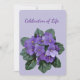 Custom Remembrance, Memorial, Celebration of Life, Remembrance Service Invite with a African Violet Houseplant