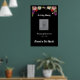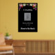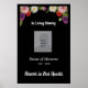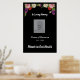 Memorial poster for funeral service or celebration of life event has a floral top border and the script phrases "In Loving Memory" and "Forever in Our Hearts". Edit all text as needed and change out the photo placeholder for a photo of the person being honored. The black background can also be changed to another color if you like. The poster can be mounted on a board and placed on an easel at the event, or hung on a wall or door.