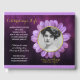 Lovely floral design featuring a beautiful, single purple daisy against a dark purple background. Simple and elegant gold ring frame awaits your favourite photograph. Makes a wonderful, personalised memorial service design. Replace the sample portrait photo and text with your own. Perfect for commemorating a dearly departed who enjoyed flowers, gardening, nature, the beauty of life...
