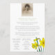 Order of service double-sided yellow spring daffodils funeral program. Simple yet elegant program, replace sample text and photo holder with your own special photo and funeral information details. Original watercolor painting and design by Sarah Trett for www.mylittleeden.com