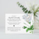 Personalised memorial memory cards featuring a pretty watercolor white flower, a thank you note, and lines on the reverse for your funeral guests to write a memory about your loved one.