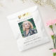 Elegant, chic funeral feed the birds seed packet favour bag to celebrate the memory of your loved one in a modern minimalist design style on a simple clean white background. The design can easily be personalised with your own photo and text to create a special tribute for your loved one's funeral, memorial or celebration of life. The image shown is for illustration purposes only to be replaced with your own photo. The placeholder image is of a beautiful woman with short blonde hair wearing a botanical floral top. Please note that wild bird seeds are not included - you will need to buy bird or flower seeds to enclose in the favour bag. If you need help personalising this product, please contact me using the message button and I'll be happy to help.