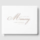 Customer specific, memorial, elegant, simpel "In Loving memory" brown handwriting font, white funeral guest book. Availible in different colours and sizes.