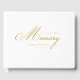 Customer specific, memorial, elegant, simpel "In Loving memory" gold-beige handwriting font, white funeral guest book. Availible in different colours and sizes.