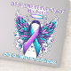 Beautiful suicide prevention awareness ribbon with angel wings and halo, surrounded by butterflies, all in purple and teal.