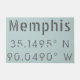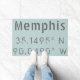 Memphis, Tennessee longitude and latitude coordinates in distressed fonts give this a modern urban look
