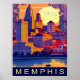 Memphis in vibrant colours. Sailing boats on Mississippi river. Travel poster.