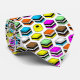A colourful seamless repeat pattern made up of stylised geometric liquorice allsorts shapes inspired by Memphis patterns and Pop Art. The artwork for this pattern is vector based so can be made larger or smaller without loss of quality.