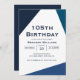 Men's 105th birthday invitation with a blue geometric design. Personalise this 5x7 invite with your party details.