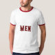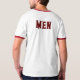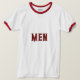 Men Text or Name or Word with Dark Red Colour Text and The Style is Basic Ringer T-Shirt, Colour type is White/Red and Size type is Adult 2X.
