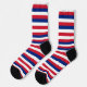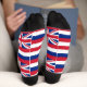 These socks proudly display the flag of Hawaii, renowned for its striking design featuring eight alternating horizontal stripes of white, red, and blue, representing the eight main islands of Hawaii. In the top left corner, there's a Union Jack, honouring Hawaii's historical ties to the United Kingdom, and on the right side, a red, white, and blue stripe with eight white stars representing Hawaii's status as the 50th state of the USA.