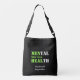A motivational CROSSBODY BAG promoting men's mental health, and encouraging men to talk. The design shows the words MENTAL HEALTH combined with MEN WHO TALK HEAL. There is a placeholder Scripture verse from Ecclesiastes on the front and a placeholder name on the reverse, which are CUSTOMIZABLE, so you can personalise with your name, organisation or text of your own choice. Part of the MENTAL HEALTH Collection.