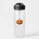 Bold, fiery-eyed pumpkin with a sinister grin, perfect for Halloween costumes, decorations, and festive apparel that capture eerie autumn vibes.