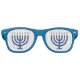 Cool Hanukkah Party sunglasses in blue featuring a menorah for Chanukah. Rock your Hanukah celebration with these fun Jewish glasses.