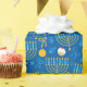 This modern wrapping paper is super cute! It has menorahs, dreidels, gelt, cupcakes, bows, and Stars of David all in blue and gold. Get enough to wrap all your gifts! They'll look fabulous!