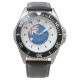 Men's Stainless Steel Black Leather Strap Watch Australia Flag