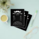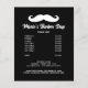 Men's barber shop hair salon price list promo Flyer. Make your own price list menu for your business. Professional moustache logo with cool script typography. Modern minimalist design for barbiers. Customisable back background colour. Add company name, slogan, services, haircuts, styling options, prices, opening hours, phone etc. Professional marketing flyers for handing out and putting in mail boxes. Black and white or custom colours. Add a custom photo on the back optionally.