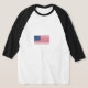 Raglan 3/4 sleeves. Double-needle stitched bottom and sleeve hems.