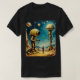 A time traveler encounters two giant robotic creatures in this cool sci-fi t-shirt design.