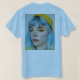 "Portrait of a young woman with pastel blue hair, featuring a subtle, natural-looking yellow eyeshadow and pale skin adorned with freckles. The design incorporates soft pastel colours to highlight her ethereal beauty, creating a serene and stylish look perfect for a t-shirt print."