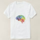 Trendy t-shirt in black (or white), featuring at the centre a detailed geometric illustration of a human brain, divided into two halves. The left side is drawn with structured lines and cool tones such as grey and blue, symbolising logic and analysis, while the right side bursts with vibrant colours like red, yellow, pink, and green in the form of paint splashes and artistic strokes, symbolising creativity and imagination. The design blends thought and emotion, reflecting a personality that loves both art and knowledge.