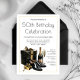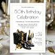 Celebrate in style with our Men's Formal Any Number Birthday Party Invitation! Featuring black and gold gifts, champagne with glass, and men’s dress shoes on a white and gold background. You can add a colour to the outside area and the backside. Personalise with your age and event details. Perfect for an unforgettable and upscale celebration.