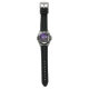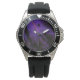 The Men’s Crown Protector Watch features a polished and matte steel finish for a sporty and rugged look. Designed with the modern man in mind, this watch is constructed with a black rubber strap and a striking protector cap. It has a Purple & Black Digital Art Design Face and a 3-hand analogue Japan Quartz® movement.