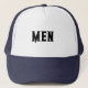 MEN text or Name with Red/White/Blue Colour Trucker Hat, In This Trucker Hats or Caps You can able to edit or Change the MEN Text.