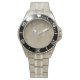 Has heft and feel of expensive stainless steel quartz watches. Good band with safety catch. I removed links, which is easy because engraved arrows show direction to push the linking pins. As always by this seller, the image (a railroad logo) is a perfect reproduction of my emailed image, and is precisely spaced and aligned.