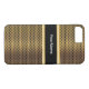 Men's business smartphone case with gold metal mesh look background design elements digitally printed on the cover and monogram space you can personalise with your name drop, monogram initials, or message.