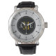 Men's Classy Monogram Watch with roman numerals. Add your first, middle and Last initials. Black and White and very classy. Yellow middle monogram.