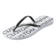 Men's Custom Print Flip Flops. Unisex. THIN BLACK Straps & WHITE soles. 2 footbed & 4 strap colour options in thin strap style. 100% rubber thong style. Unisex. Similar to Havaianas®. Made in Brazil. Printed in the USA. Personalised birthday, Christmas, Valentine's Day gifts for him (university, uni, college boy, boys, teenage boy, teenager, young man, men, boyfriend, son).