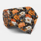 This men's dress tie is shown in a lovely black, grey, rust multi colour floral print design.