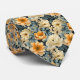 This men's dress tie is shown in a lovely blue multi colour floral print design.