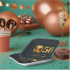 Celebrate a milestone in timeless style with this elegant 50th birthday plates. Featuring a luxurious black background and a bold golden tuxedo graphic, the design pairs classic sophistication with modern simplicity. The striking “50” detail sets the tone for a refined evening, while party information is displayed in a graceful serif font for a polished finish. Perfect for a formal birthday celebration, black-tie event, or upscale soirée.