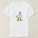 Make a bold statement without saying a word with this hilarious "Rude Goose" graphic. This minimalist vector design features a white goose whose body is cleverly shaped into a defiant hand gesture. With clean black outlines and a vibrant pop of orange on the beak and feet, this cheeky illustration is perfect for those with a rebellious sense of humor. The high-resolution graphic is isolated on a white background, making it ready for high-quality printing on your favorite apparel.