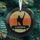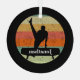 Mens Gymnastics Boys Team Sunset. Strong male gymnast on a pommel horse in front of a cool retro sunset image on a cool personalised Christmas ornament gift.