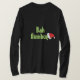 Mens holiday shirt is a basic long sleeve shown in black with text Bah Humbug in snow cap letters.