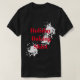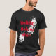 This men's holiday t-shirt is shown in Black with a crew neck and short sleeves and is shown with a bold print text design and White splotch marks as if it were flour patches. Shown in Red, White and Black.