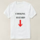 Men's Hanes cotton shirt featuring the text, 'choking hazard' and an arrow pointing downwards.
