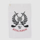 Personalised monogram modern unique golf towel featuring golf clubs logo, name and initial.