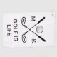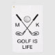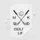 Men's monogram golf towel design with image of golf clubs and a golf ball that form an emblem monogrammed with name initials you can customise online. Created in classic black and white.