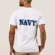 Men's t-shirt is shown in Ash Grey with text that reads Navy on the back side only.